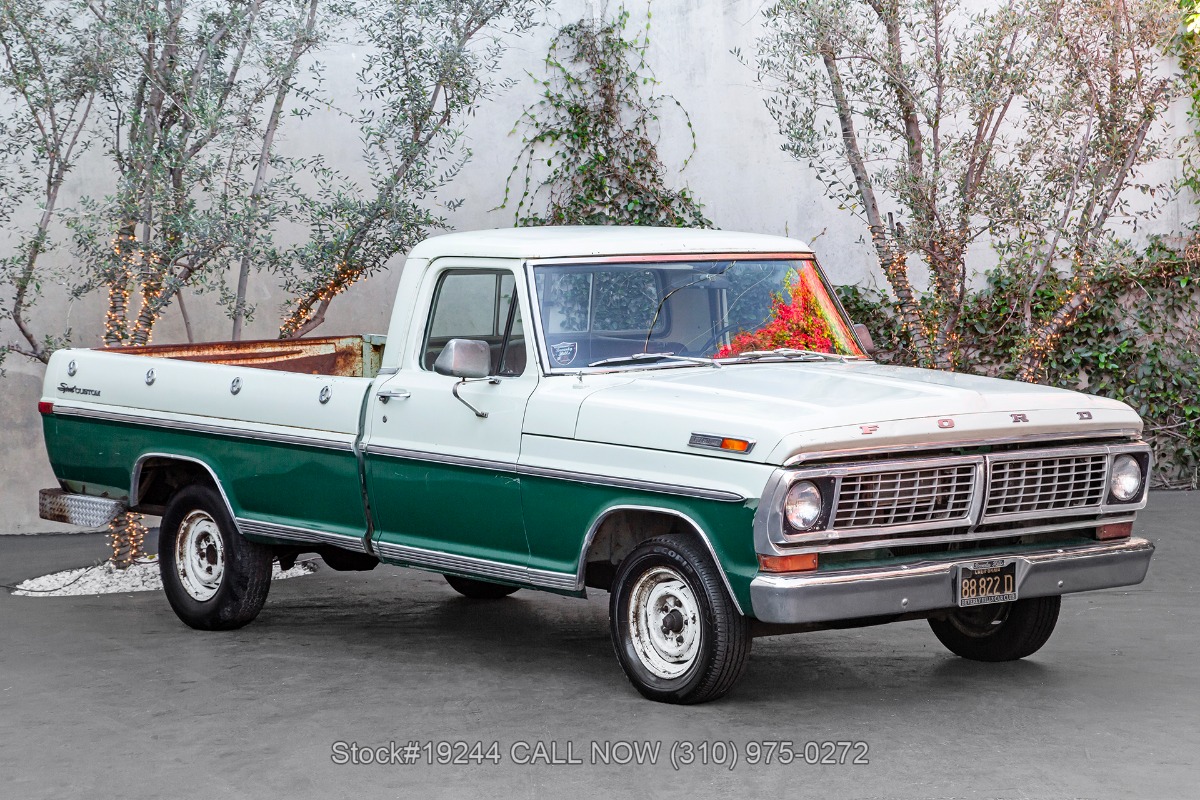 Here is your chance to own this 1970 Ford F100 Sport Custom. A true vintage truck, this is a timeless Bumpside with a perfect canvas of character and history, waiting for its next chapter. This truck boasts an absolutely classic two-tone factory color scheme: Wimbledon White (upper) over Boxwood Green (lower). The body carries its years with pride, showing significant, honest patina that enthusiasts lovethe perfect opportunity for a restoration or a stylish driver with a rustic Bumpside look.
