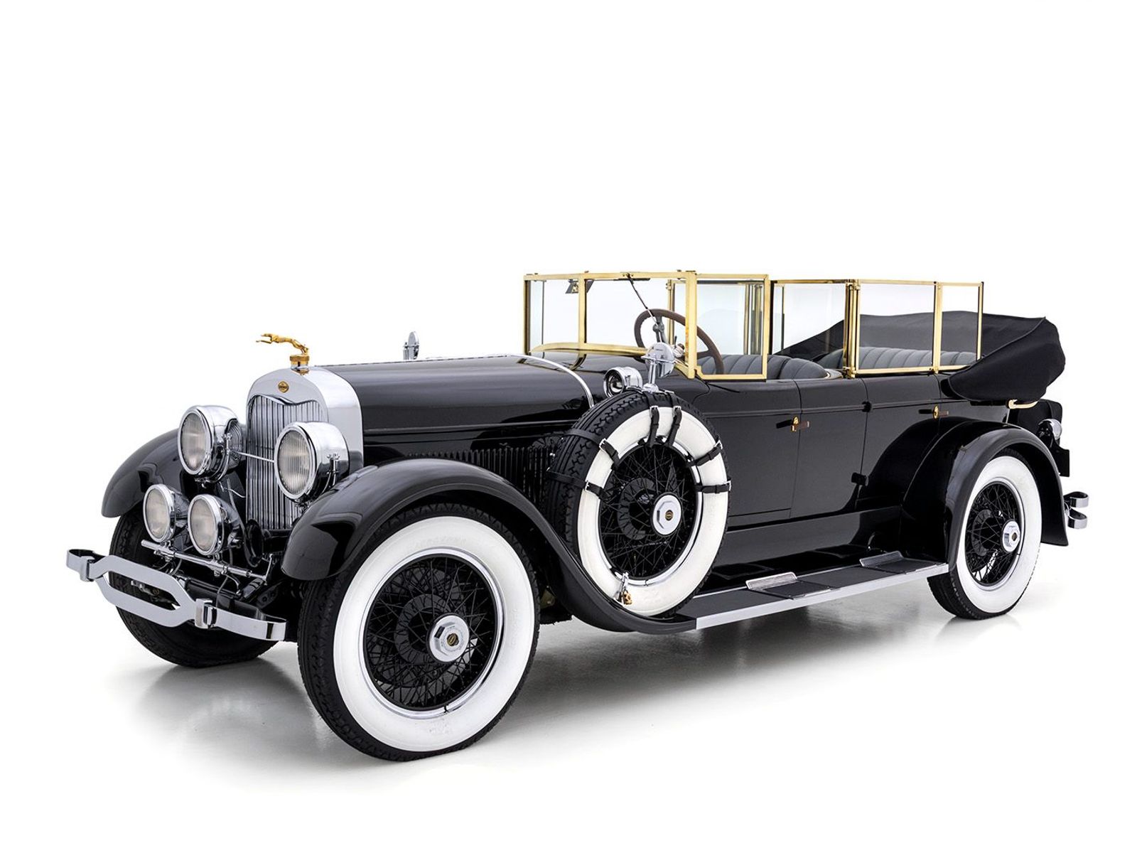 The body was created to suit Mr. Sharps personal tasteanything but staid. Constructed in lightweight aluminum, it features a tapered boattail rear deck, deeply cut doors for ease of entry, and an elaborate window system that allows the open tourer to transform into a fully enclosed limousine. Much of the brightwork was hand-formed and remains intact today, including the distinctive brass hardware, now freshly polished. Both the greyhound radiator cap and the dash fascia are gold platedadding an unexpected flourish to an already decadent interior. Even more remarkable, the cabin was designed with convertible seating that allowed it to fold into a twin bed for long journeys. The restoration retained these features and preserved the distinctive character that made the car so special from the outset.