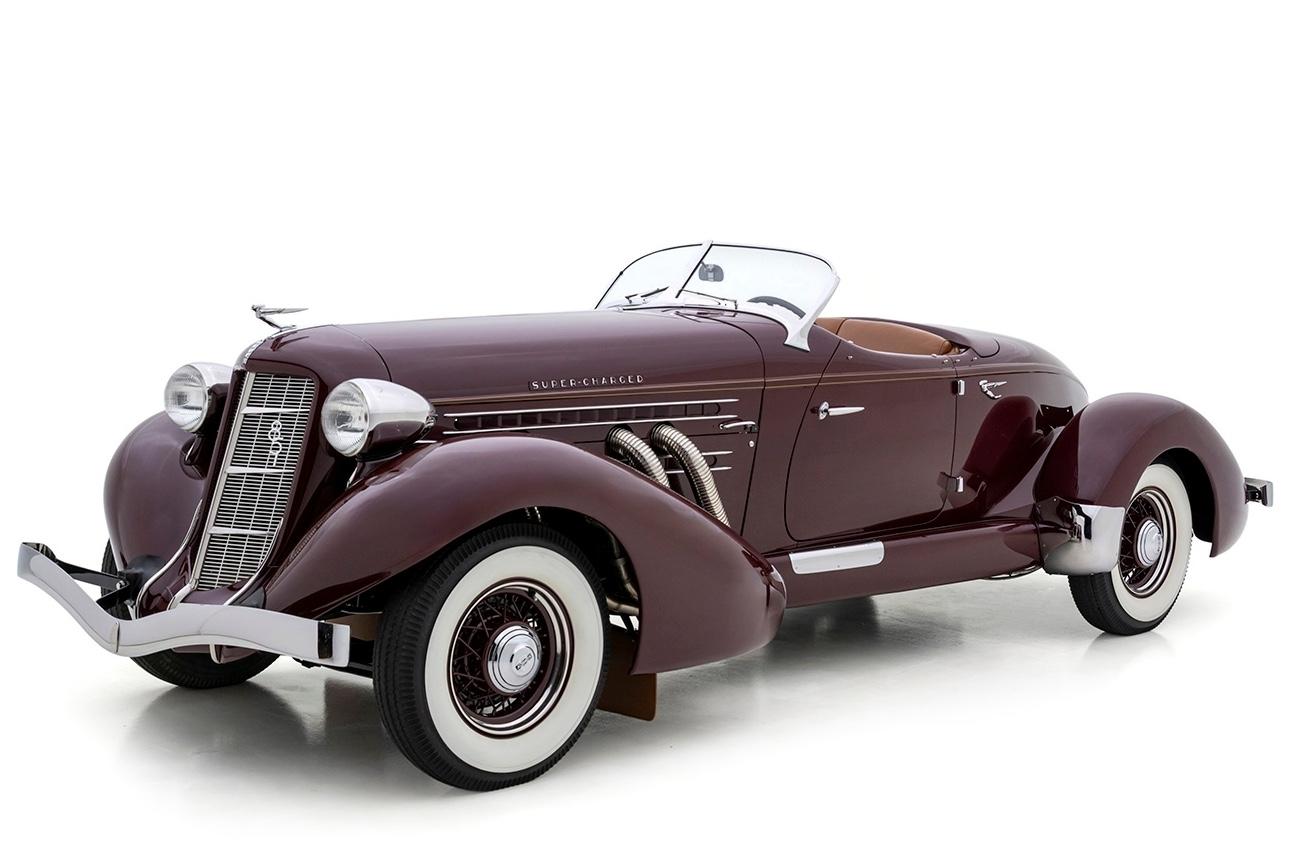 The Auburn Speedster remains in superb condition with beautiful finishing and detailing throughout, belying the 25-year-old restoration. The body and paint are beautifully preserved, with only minor imperfections noted along the belt line. The maroon paint is complemented by wonderful caramel leather upholstery, a tan top, and period touches like natural leather mud guards. In the current owners care, it has been meticulously maintained, serviced, and painstakingly documented. An extensive history file covers the cars ownership chain, show and event history, past restorations, and recent service. Additionally, there are numerous photos from throughout its life, and a copy of the ACD Certificate, verifying this as a Category 1 Original car.