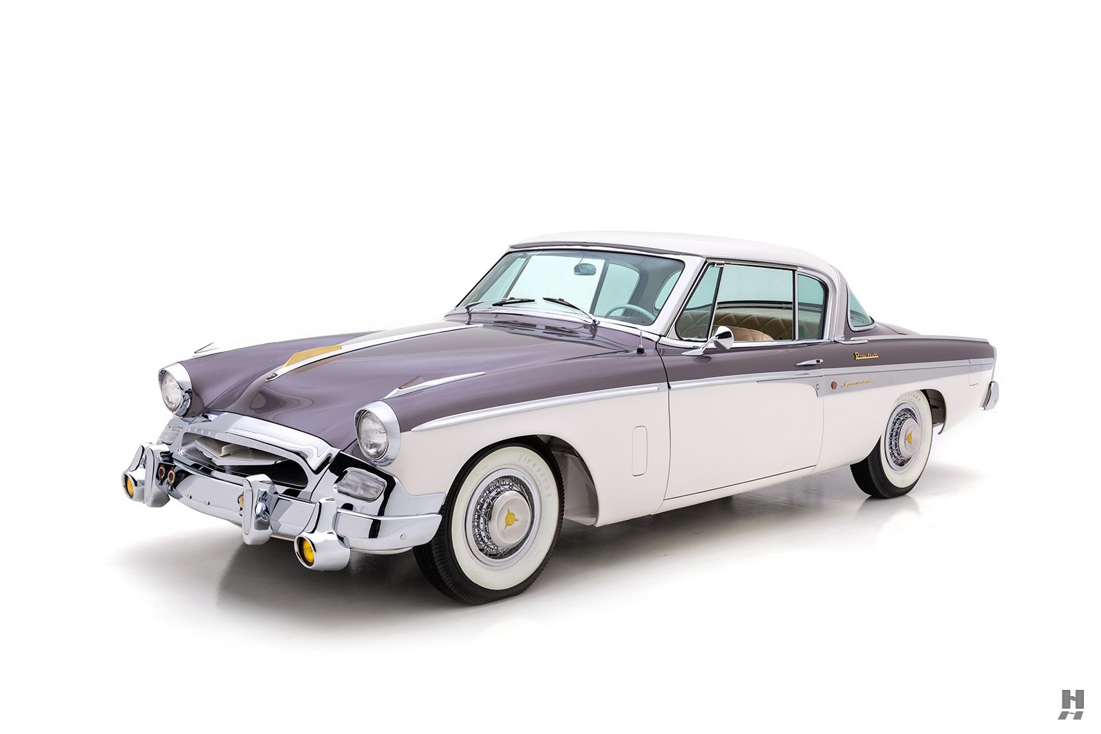 Established in 1852 with roots in wagon manufacture Studebaker ranked among the worlds longest-running automakers through 1966. The companys post-WW II years were particularly vibrant with the company beating the Big Three with the First by Far with a Postwar Car with its redesigned 1947 models styled by future legend Virgil Exner for Raymond Loewy Studios. Sleek and modernistic the new Studebakers struck a chord with buyers and spurred sales to new heights. Studebakers bold new cars drove it to a solid eighth-place sales ranking for 1949 before settling into a steady ninth as the other automakers production levels began catching up with buyer demand and new designs were introduced.Continuing among Americas remaining independent automobile manufacturers Studebaker introduced its own automatic transmission for 1950 developed in conjunction with Borg-Warner. For 1951 Studebaker beat its mid-priced competitors to market with its modern new V-8 engine a sturdy and efficient overhead-valve design that would remain in production for more than a decade. One of Studebakers most attractively styled postwar model lines arrived for 1953 through 1955 styled by Robert Bourke again for Raymond Loewy Associates. Despite its many strengths and fiercely loyal customer base Studebaker merged with Packard in 1955 in the hope that the combined entity would compete against the overwhelming might of the Big Three.Against this backdrop Studebaker developed a new Grand Touring-themed halo model dubbed the Speedster based on the top-echelon President State series with production encouraged by a batch of 20 cars that drew rave reviews on the show circuit. Studebakers move into the growing Personal Luxury market was logical given the emergence of younger and more affluent buyers seeking sportier automobiles plus the presence of the Corvette C-300 and Thunderbird from archrival marques Chevrolet Chrysler and Ford.A special one-year-only model for 1955 the President Speedster was a sleek two-door hardtop coupe on the long 120.5-inch wheelbase chassis. Sophisticated design cues included a dashing C-pillar treatment reminiscent of contemporary designs from Italian design houses including Ghia and Pinin Farina. Ample power came via the 185-horsepower 259 cubic-inch Studebaker V-8 engine with four-barrel carburetion and dual exhaust outlets exclusive to the President. Speedster features and amenities were numerous including Shoemaker-stitched diamond-pleated upholstery in top-grain leather plus front and rear carpeting a map pocket and eight-tube pushbutton AM radio a striking machine-turned instrument panel and full instrumentation including a Stewart-Warner 160 mph speedometer and 8000 rpm tachometer. Other highlights of the fully equipped President Speedster included turn-signal indicators an electric clock tinted glass a cigarette lighter oil filter and oil-bath air cleaner dual backup lamps triple horns two-speed electric wipers tubeless whitewall tires wire-basket wheel covers bumperettes and fog lamps. With base pricing at $3253 the President Speedster was Studebakers most expensive model when new and production was limited to 2215 examples for 1955 only divided between 1795 from South Bend Indiana and 420 from Studebakers Los Angeles assembly plant.This stellar multiple award-winning President Speedster is a rare Los Angeles-built example assembled in June 1955 and shipped from the factory on December 8 1955. In addition to the standard Speedster features listed above this example adds factory-equipped options including twin side mirrors power brakes power steering electric windows and electric front seats. Under the prior ownership this President Speedster received a total restoration by a devoted marque expert finished to strict standards of authenticity including research provided by the Archivist of the Studebaker National Museum. Clearly evident from its outstanding and virtually impeccable quality the car was dismantled and every part and component disassembled and either refurbished or replaced as required with the project exceeding $250000.Appropriately the Speedster is powered by the highly detailed numbers-matchingPassmaster259 cubic-inch V8 engine. Beautifully and authentically refinished the Speedster is resplendent in Shasta White to the roof and lower body surfaces complemented by Pimlico Gray accents to the hood trunk lid and upper body. The luxurious interior was restored in Congo Ivory leather upholstery with the correct diamond stitching motif.This President Speedster has the accolades to back up the superb restoration earning the AACA Senior Award and National First Prize plus Best in Class at the Studebaker Drivers Club International Meet - all during 2014. By 2017 the President Speedster cut a veritable swath through shows and concours events earning awards through 2021 under AACA judging and concours events at such venues as Hilton Head Pinehurst the Hemmings Motor News Concours dElegance Radnor Hunt Boca Raton and Philadelphia. The Speedsters many accolades culminated in selection as a finalist for the elite Zenith Award from the AACA in 2021. Befitting its rarity and excellence this President Speedster was accorded its FIVA Identity Card Under the auspices of the Historic Vehicle Association (HVA) under the A/3 (Standard/Restored) category in October 2017. Documents include a copy of the Studebaker Passenger Car Production Order supplied by the Studebaker National Museum FIVA Identity Card (No. 071005) and a summary of awards and vehicle data.Proudly offered in exceptional condition this exceedingly rare and beautiful 1955 Studebaker President Speedster is a compelling find for collectors and enthusiasts of postwar automotive design icons. Eligible for a multitude of prestigious concours events worldwide it is one of the finest 1950s Studebakers extant and currently available.Offers welcome and trades consideredFor additional details please view this listing directly on our website https: