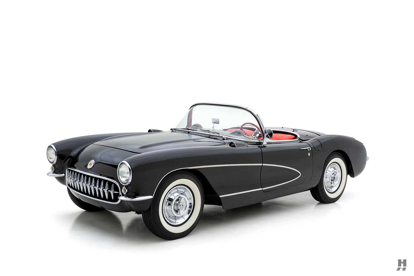 Attractively presented in black with black coves, with a black top over red upholstery, this 1956 Corvette is offered from the care of an extensive private collection, where it has been well maintained by the owners in-house mechanical staff and enjoyed with gusto on rallies and tours. It is ideal for continued enjoyment in the same manner, while being attractively finished and detailed, and it benefits from select updates to improve performance and drivability.