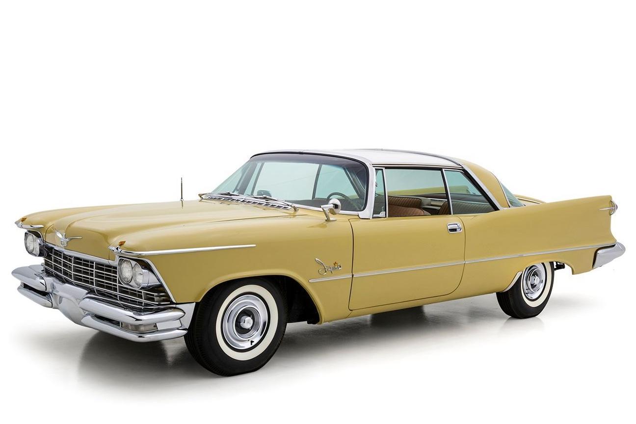 The car offered here, identified by chassis no. C577843, is a 1957 Imperial Crown Coupe finished in Chryslers dazzling Champagne Gold with a contrasting white roofa color scheme that highlights the models sculptural forms and dramatic character. This example benefits from a recent, comprehensive restoration, presenting today in outstanding condition.