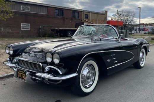 This beautiful 1961 Chevrolet Corvette is a very attractive driver with a 4-speed manual and two tops. Black with red interior. 283 V8 with 270hp linked to a 4-speed manual gearbox. A black-plate California car that runs, drives, shifts, and stops very well. The white convertible top is also in good condition and all gauges work as they should. There are some scratches and chips over the front end, hood, and rear deck. Very presentable and clean interior. Owner?s Guide and some other booklets are included in the sale. Very clean and solid underside and frame. An honest and straight car overall. A very desirable year for the C1 Corvette. This highly collectible American icon is not to be missed.