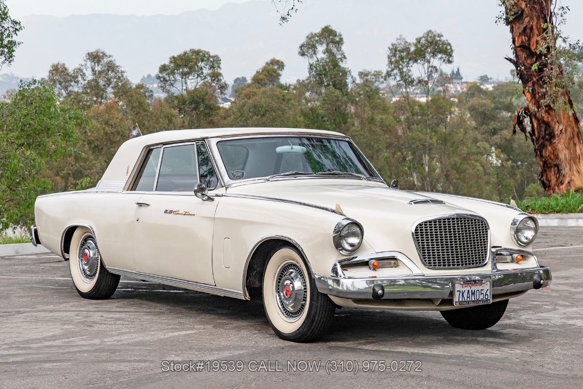 Highlights: - California Car - Off-White Exterior Color - Automatic Transmission - V8 Engine - Four-Barrel Carburetor - Power Steering - Drum Brakes - Egg-Crate Grille - Studebaker Hub Caps - Chrome Accents - Whitewall Tires