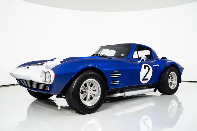 This 1963 Superformance Grand Sport Corvette for sale has a Lingenfelter 6.2 Liter LS3 V8 making 550 HP, Borla 8-Stack Electronic Fuel Injection, Tremec T-56 6-Speed Manual, 3.73 Rear Gears w/ Limited Slip, Classic Admiral Blue w/ White and Red Accents, Light Blue Leather Bucket Seats w/ Center Console, 4-Wheel Willwood Disc Brakes with Drilled and Slotted Rotors, Power Windows & Locks, Power Steering & Air Conditioning, Dynamat Sound Deadening, Stainless Coated Side Pipes, 15 Knock Off Wheels with High Performance Avon CR6ZZ Radial Tires Measuring: 245/60R15 Front & 295/50R15 Rears, Built to 7/8 Scale, Just Like the Originals! Superformance is Not Just a Name, Its What This Car Is!