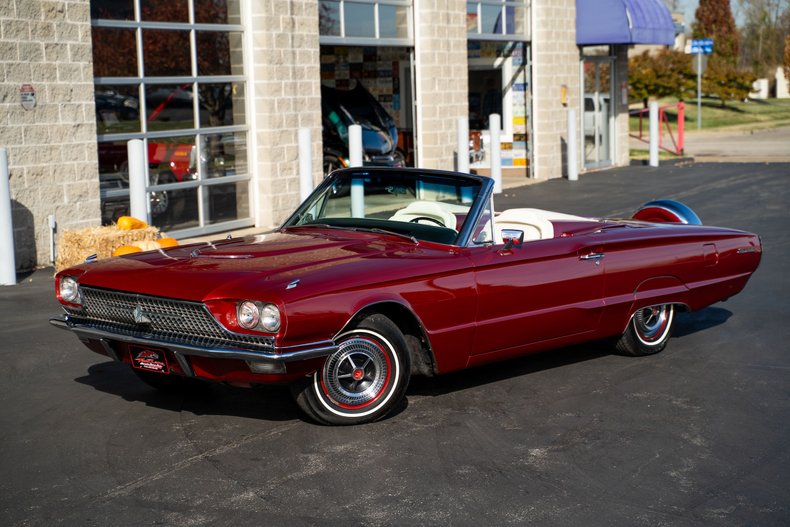 This 1966 Ford Thunderbird for sale has a 390 4-Barrel V8 with 315 HP & 427 TQ, 3-Speed Automatic, 3.00:1 Rear Gear Ratio, Red Metallic Exterior w/ White Top & Tonneau Roadster Cover! White Vinyl Bucket Seats, Power Drivers Seat, Power Windows, Power Front Disc Brakes, Power Steering, Full Exterior Ceramic Coating, We also have the Shop Manual, Owners Manual and Paperwork from the Restoration! This 66 T-Bird went through an extensive Restoration in 2013, Last Year for the Classic T-Bird in Convertible Form!