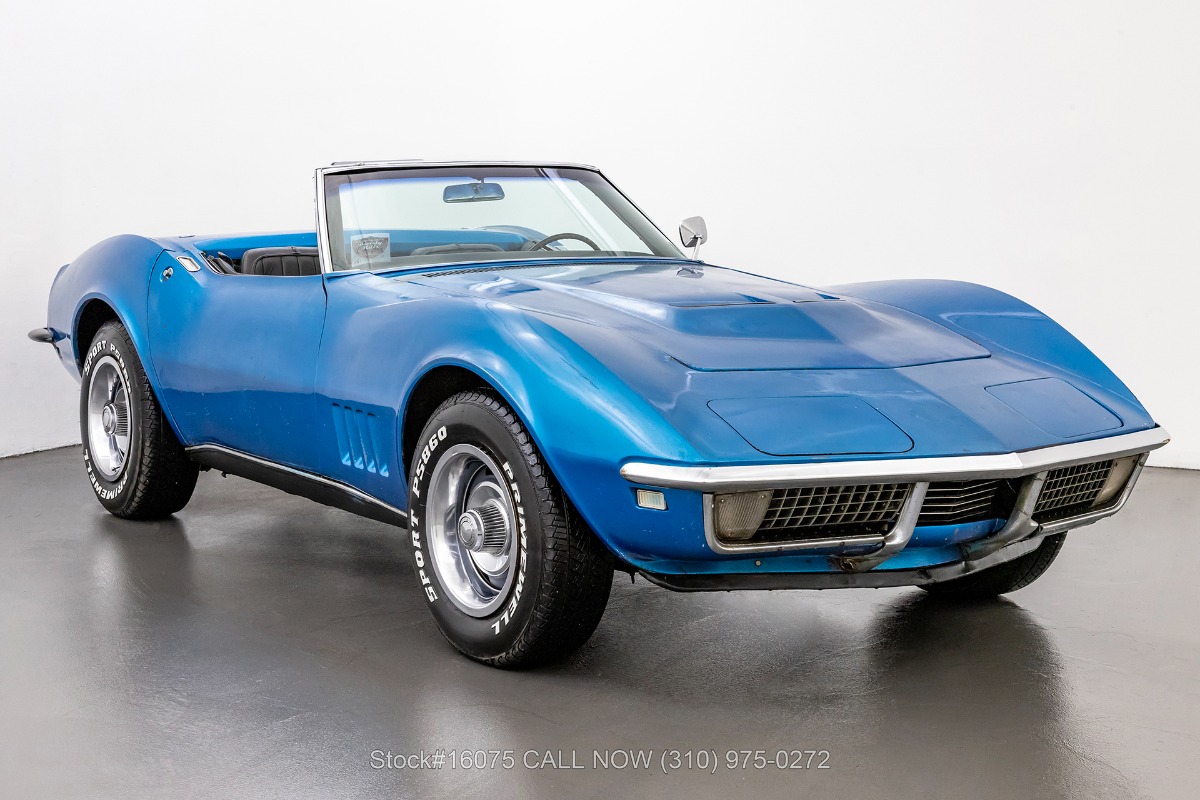 This third-generation 1968 Chevrolet Corvette Convertible has just came out a long-term ownership and is finished in its factory color LeMans Blue (976) combined with a black interior. This patinated C3 is equipped with a 4-speed manual transmission with a Hurst shifter, V8 engine, Street Demon carburetor, four-wheel disc brakes, dual exhaust outlets, concealed headlights, chrome trim, three-spoke steering wheel, quadruple tail lights, rear bumper integrated spoiler, black convertible soft top, fender side vents, V shaped front bumper with a split rear bumper, Chevrolet-branded hub caps with beauty rings, and Primewell Sport PS860 tires. Amenities include manual-crank windows, front bucket seats, lap belts, a center console, driver-side mirror, analog clock, AM/FM radio, Corvette-branded floor mats, an ashtray, and sun visors. An iconic American sports car that is offered at a great price and is mechanically sound. For $24,750
