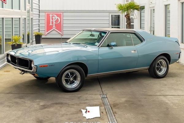 *1971 AMC Javelin SST*American Motors Corporation (AMC) is one of the often forgotten contributors to the muscle car boom of the late 1960s and early 1970s. With cars like the Javelin and AMX AMC made some truly competitive products and even won the Trans-Am race series with the Javelin in 1971 1972 and 1976 against cars like the Mustang Camaro and Challenger.This 1971 Javelin SST was from the first year of the second generation Javelin which had seen a complete redesign that ran until 1974. Finished in light metallic blue this Javelin benefits from a comprehensive rotisserie restoration by North American Muscle Cars between 2018 and 2019 and remains in exceptional condition. The 1971 redesign included unique fender bulges a rear spoiler and long sloping front hood. As an SST this car occupied the middle trim level for the era giving the vehicle full length pinstripes upgraded interior materials and more exterior brightwork. Sitting on a set of 500 Magnum chrome wheels this car looks as good as the day it rolled out of the showroom and is very deserving of its Best in Class win at the 2025 AMC Rally in Vancouver WA.Open the door and the interior of this Javelin feels far more refined than most of its muscle car competition from the era. Wood applique covers the dashboard and portions of the door cards while the two-tone dark blue and black vinyl interior looks quite upscale with two bucket seats in front and a bench in the rear. Sit in the drivers seat and you are met by a deep-dish 3-spoke steering wheel that frames a unique 3-gauge pack with a central speedometer multi gauge to the left and a tachometer with a clock in the center. To your right is a console with a Hurst shifter and controls for the heating and air conditioning are situated behind that.Under the hood sits an AMC 360ci V8 that is rated at 300 horsepower and 341 lb-ft of torque. During the restoration the engine was rebuilt with a performance cam so that number may be a bit higher. Power is then sent through a 4-speed manual gearbox to the rear wheels. Under the car front power disc brakes are paired with rear drums. The car runs and drives fantastically and is a great representation of what a classic muscle car of the era was like when new.If you love the ethos of American muscle cars - but want something a bit more offbeat the Javelin is a great option. For every restored Javelin at your local car show there will be dozens of Camaros Mustangs and Chevelles so it is a great way to get a fun to drive car that also is extremely unique. This example presents in fantastic condition throughout and will be a joy to own for years to come.*Key Features* * Full Rotisserie Restoration w/Invoices * Over $100 000 Spent * Best in Class at 2025 AMC Rally * 360ci V8 * 300 Horsepower/341 Lb-Ft of Torque * Performance Cam * Edelbrock 650 CFM Carburetor * 500 Magnum Wheels * Vinyl Bucket Seats * 4-Speed T-10 Manual Gearbox * Hurst Shifter * Power Front Disc BrakesFor more information on this 1971 AMC Javelin SST or any of our 100+ Luxury Exotic and High-Performance sports cars always in stock contact one of our friendly and knowledgeable sales consultants or always feel free to drop by our 5-acre Bellevue WA campus with over 40 000 sq ft of Indoor Showrooms - Home of the West Coasts Most Exciting and Diverse Inventory of Luxury Exotic High Performance and Collectible Automobiles. With 150+ Always On Site Nobody Has What We Have!
