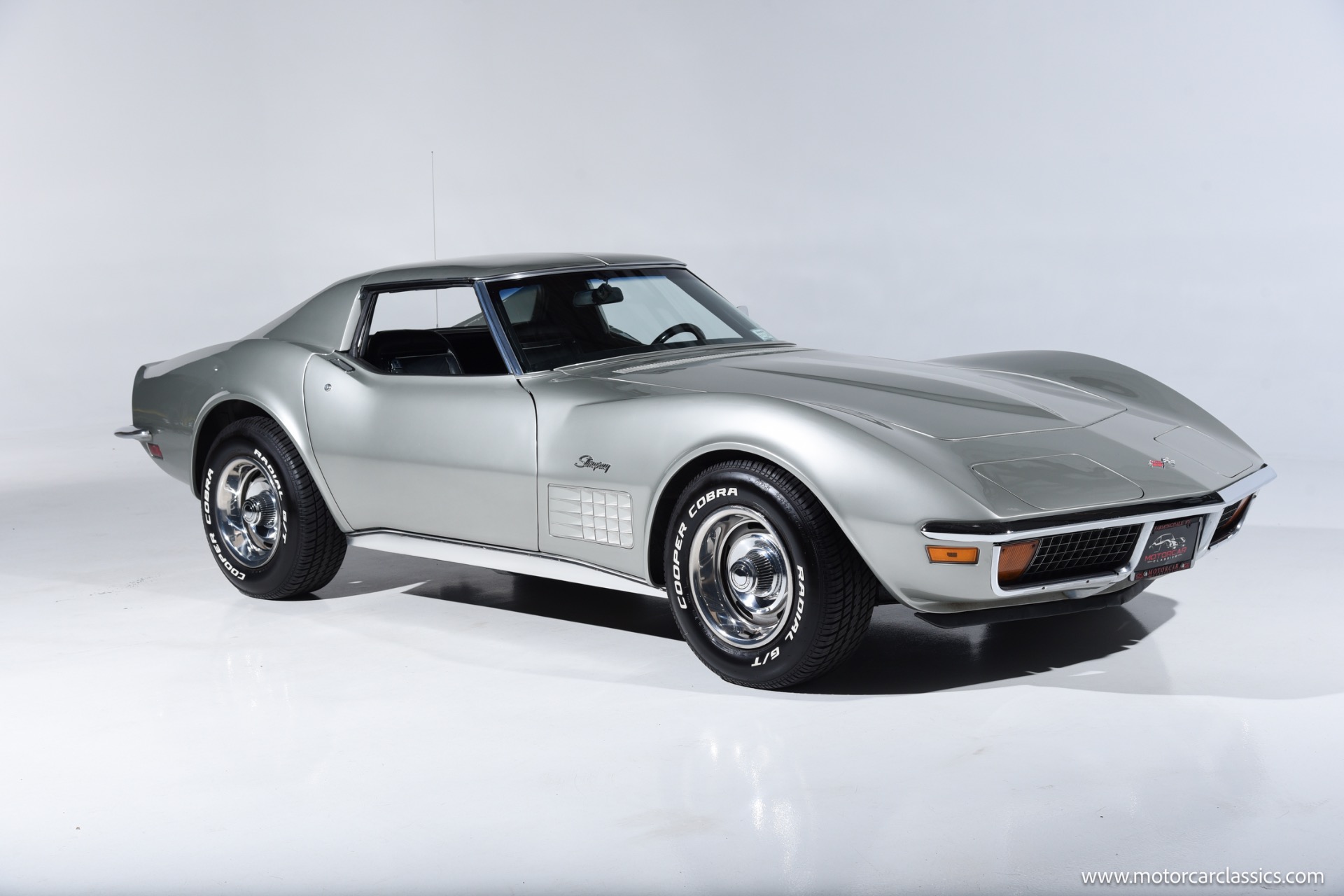 1972 Chevrolet Corvette for sale! Finished in Aztec Silver with a black leather interior, this 1972 Chevrolet Corvette stands as a striking example of the final year before the Corvette transitioned away from its classic chrome bumper styling. Under the hood resides the 350 cubic inch V8 engine paired with a 4-speed manual transmission, delivering the kind of mechanical engagement that defined early C3 Corvettes. Power steering and power brakes make for a confident drive, while factory-installed air conditioningcurrently inoperativewas a desirable comfort option of the period.