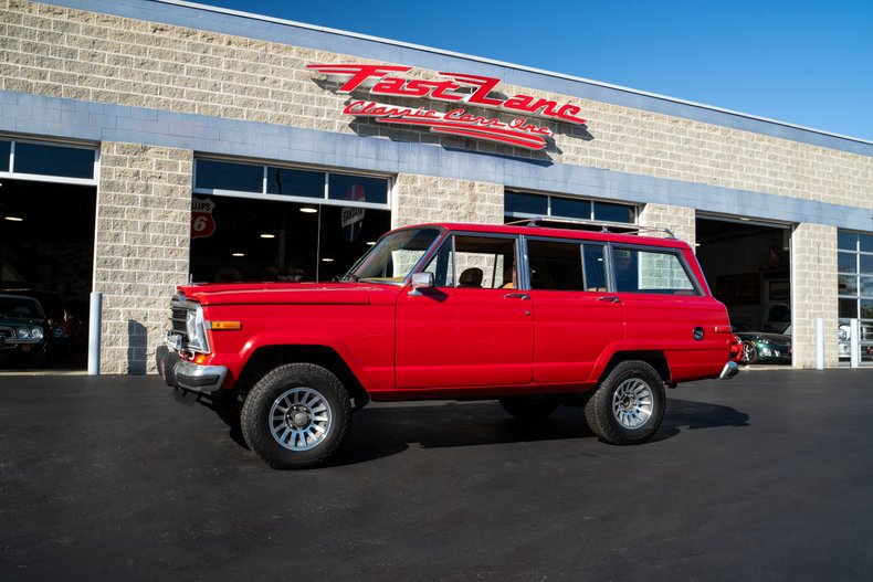 This 1987 Jeep Grand Wagoneer perfectly blends rugged off-road heritage with a touch of refinement. Power comes from a 360 C.I. 4-barrel V8, paired with a 3-speed automatic transmission and supported by an upgraded aluminum radiator for improved cooling. The result is a reliable, capable Jeep Wagoneer ready for long highway cruises or weekend adventures. Finished in a striking red exterior with a wood grain delete, this Grand Wagoneer takes on a cleaner, more modern look while keeping its vintage charm. Inside, the tan leather and cloth interior feels warm and inviting, offering comfort through air conditioning, power windows, power locks, power mirrors, power steering, and power brakes. A Bluetooth Alpine head unit updates the cabin with modern connectivity while keeping the classic charm intact. The chrome roof rack, 15-inch alloy wheels, and 235/75R15 tires highlight its classic SUV stance. Having undergone a frame-off restoration with a rebuilt drivetrain, this Jeep for sale stands as a beautifully finished example of one of the most beloved American SUVs ever built. A restored Grand Wagoneer thats both timeless and ready to enjoy!