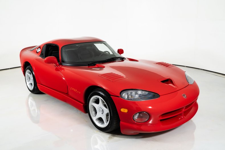 This 1997 Dodge Viper GTS for sale 8.0 Liter V10, 450 HP & 490 TQ, 6-Speed Manual Transmission, Viper Red Exterior with Polished Aluminum Wheels, Black Leather Interior w/ White Faced Gauges, Power Brakes, Power Steering & Air Conditioning, 13 Wide Rear Wheels from the Factory! Brand New Michelin Tires, 1-Owner with only 3,330 Original Miles!